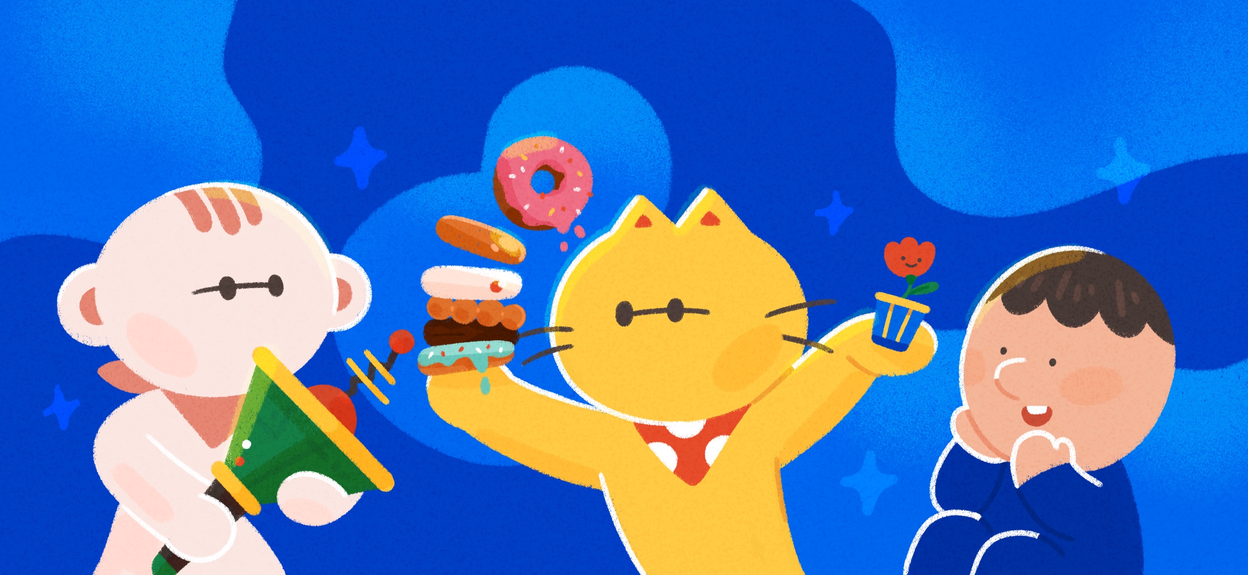 평화롭고 재밌는 일상을 선명한 색으로 표현합니다.